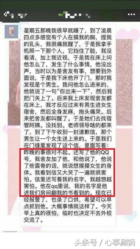 这个21岁的男生捡到一把女生宿舍的钥匙以后,挨个寝室去试,最终在五月的一个凌晨打开了政法学院一间女生宿舍,随机猥亵了上铺的一个女生。