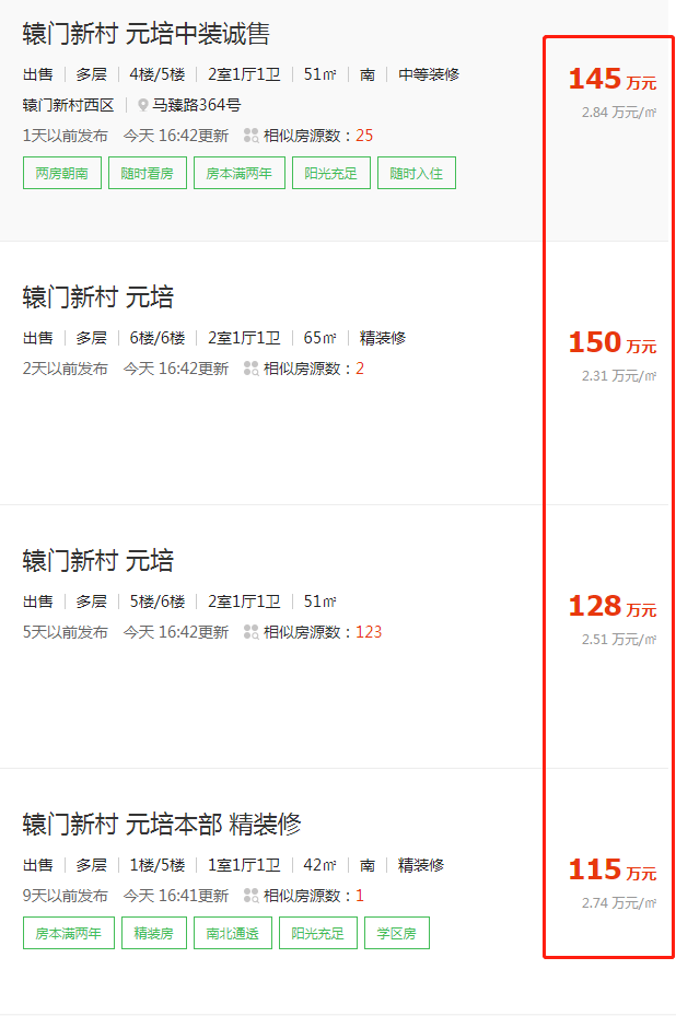 至于双元培。我们走访了附近几家中介门店,得知目前元培学区的二手房,均价在2.4万~2.7元/㎡。