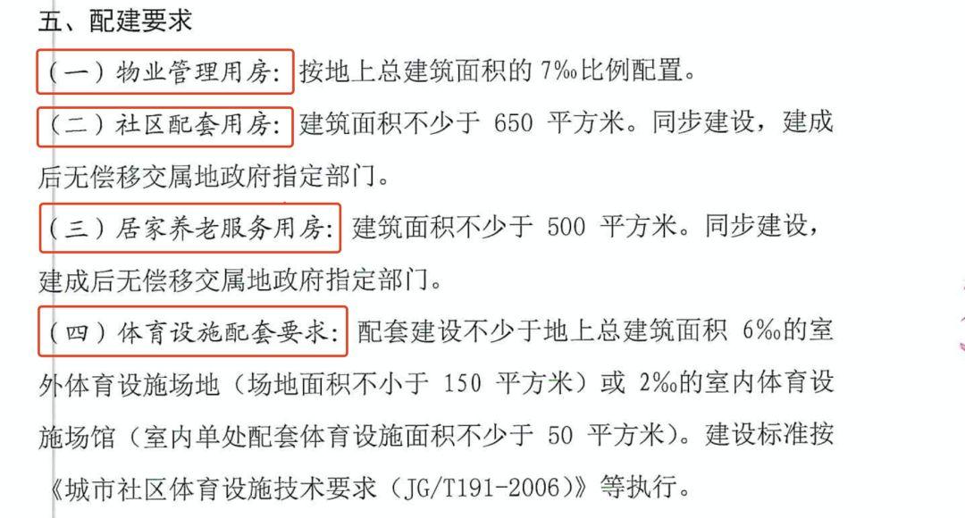 其次,地块还需要在越西路与胜利路交叉口集中配建物业管理用房、社区配套用房、居家养老服务用房、体育设施场馆。