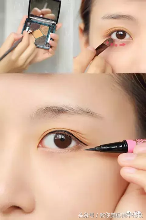 1、先选用暖棕色眼影打底整个眼窝。