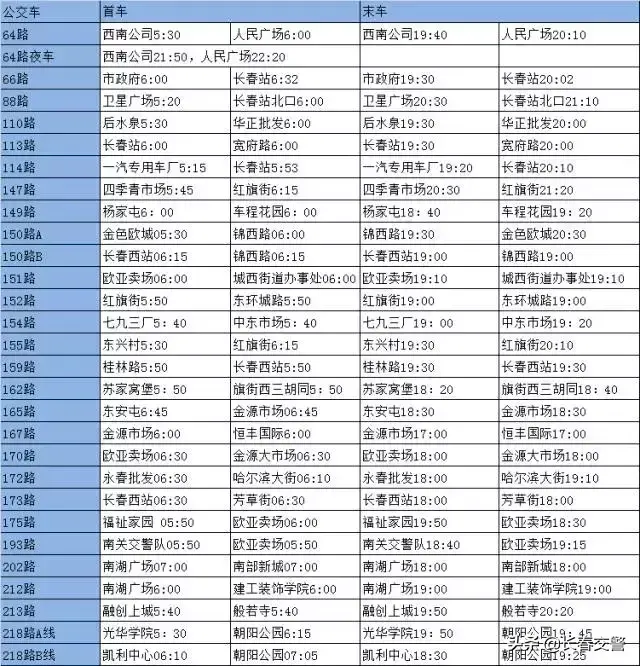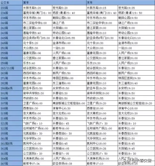 长春龙嘉国际机场对机场巴士发车时间和经停站点调整如下: