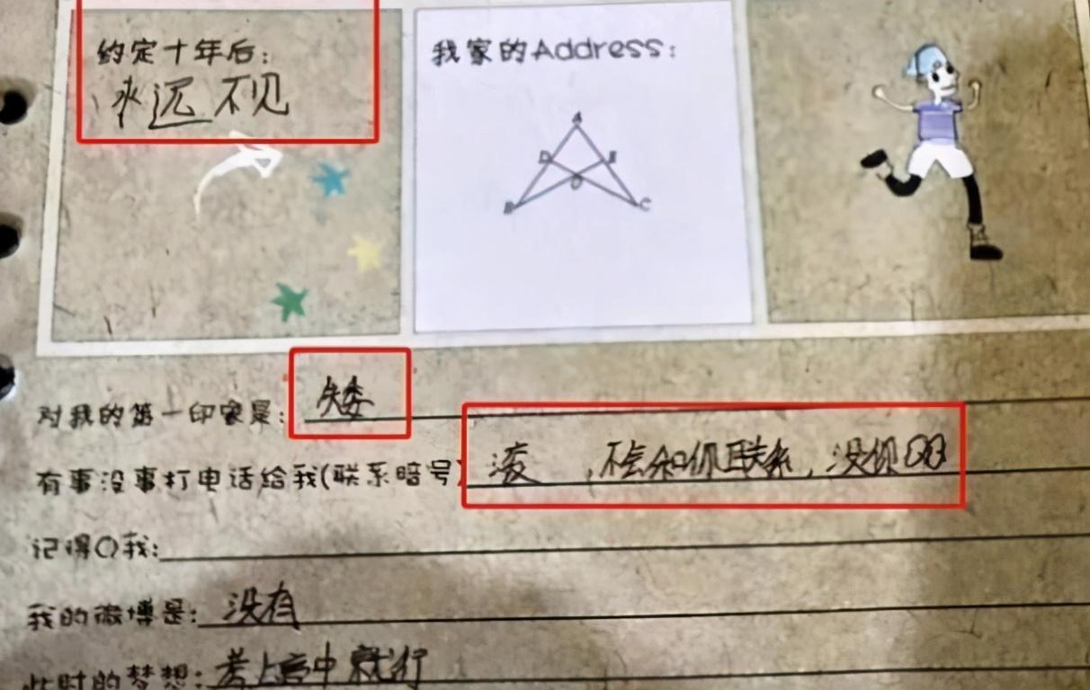 网友无意翻到多年前的同学录,揭开初中时代的秘密,可惜为时已晚。学生时代的我们是最美好的,学生时代的我们有教师有家长,更有同学赋予我们最美好的时光,但是学生还是要以学习为主,只要学生努力学习长大之后才能回报他们,才能不辜负青春的美好回忆。