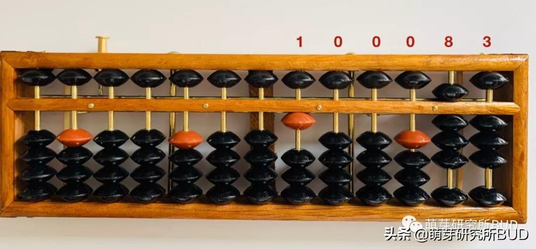 我当时就随口跟孩子们报数,他们需要在算盘上打出这列数字,比如100083。▼