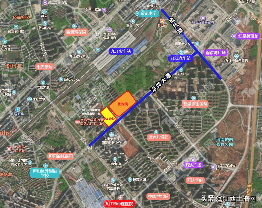 两宗地块位于九江市濂溪区,尊处九江城南新老城区结合要地。南靠浔南大道中轴主道,东接火车站南广场,九江火车站、汽车总站、新中医院等近在咫尺,周边铜锣湾广场、天禧国际商业、红星美凯龙等商圈遍布,九江市中医院、浔南小学、庐山区外国语学校等配套密集布局。整体而言,区域交通条件极为便利,配套资源成熟发达,教育资源丰富,是区域内十分具有发展潜力的优势地块。