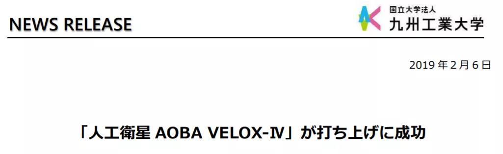 在2019年,九工大又传来好消息,AOBA VELOX-Ⅳ也已经成功发射。