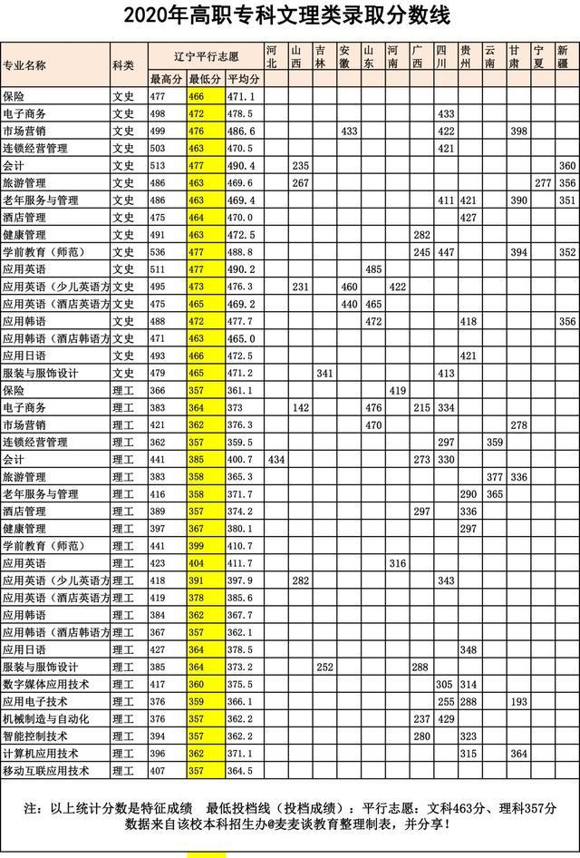 高职专科类在以下省市内有招生,表中注有各地分专业录取分数线。区分文理。