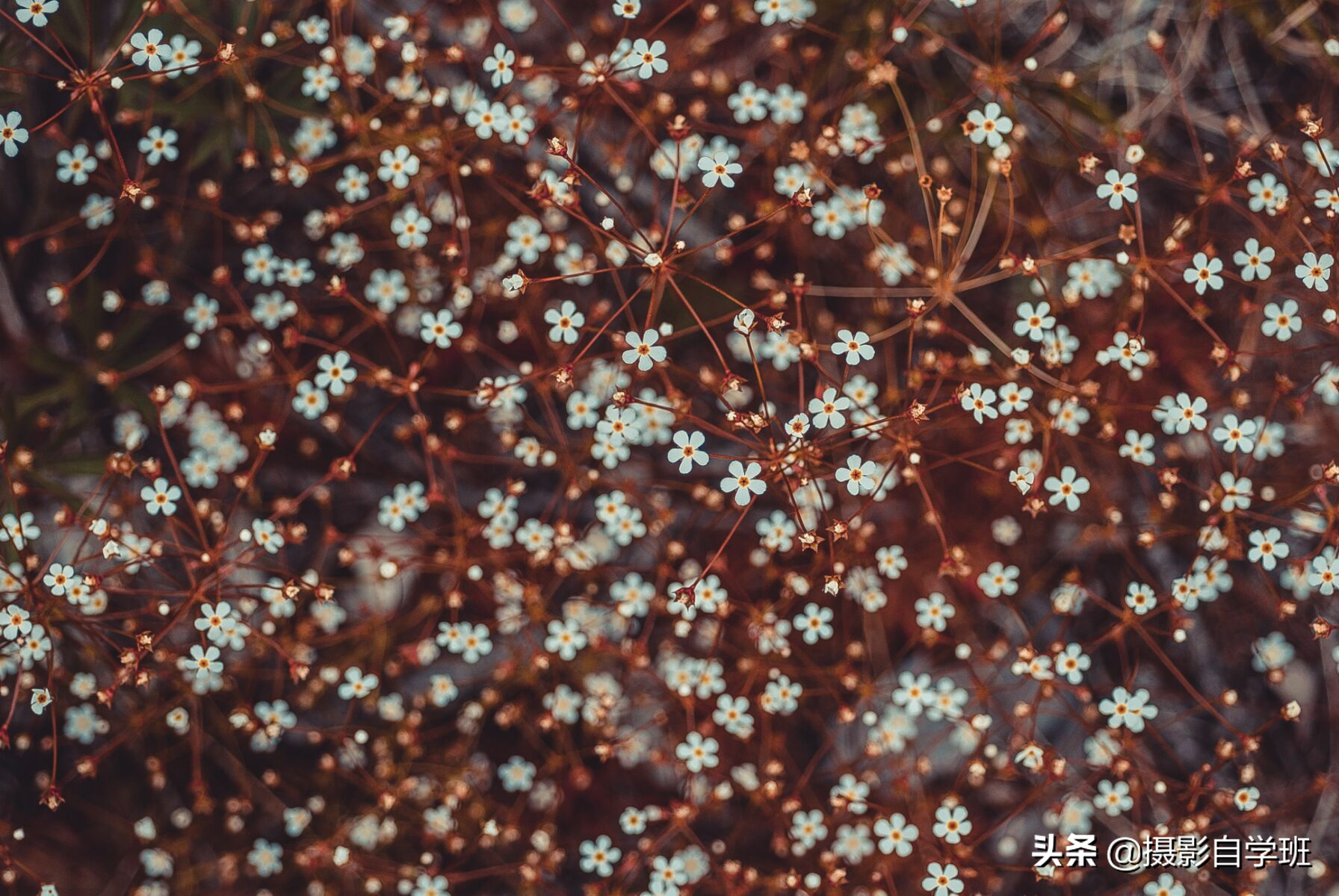 (1) 对焦在其中几朵花上,这样,被对焦的花朵,就是实的。焦点以外的,就相对虚化了。有时有虚,让照片更有主有次,即使很多小花,也不乱,还有星满天的感觉。