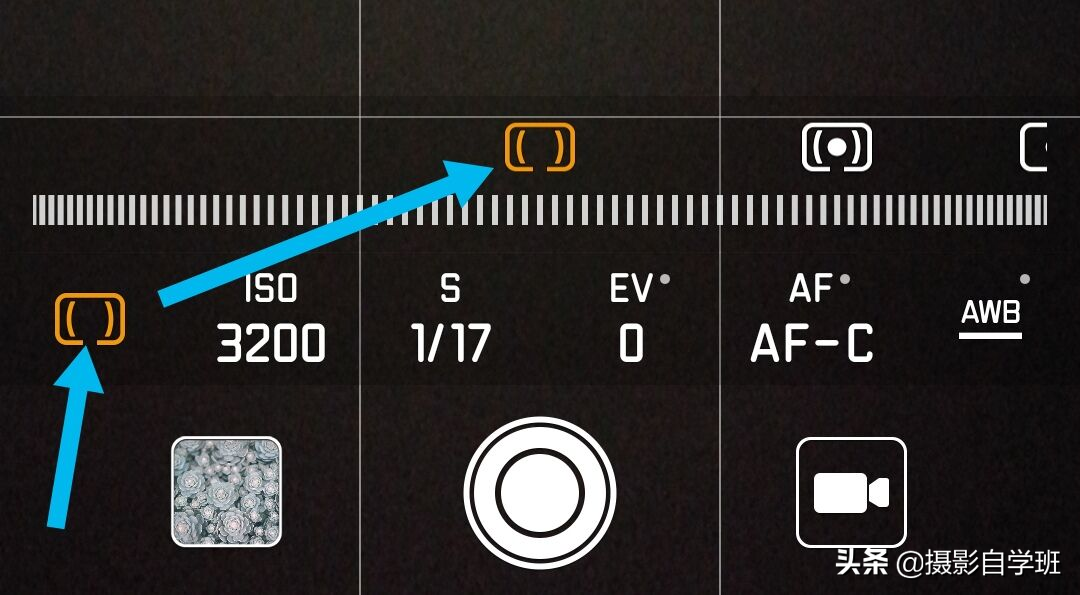 如果拍摄画面较暗,可以适当提高“曝光补偿”,单反通过设置快门感光度和光圈,来调节曝光,有的手机可以直接调节曝光: