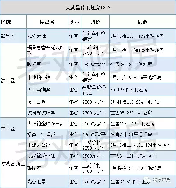 下面老欢将武汉三环内毛坯房进行汇总,共有38个,其中大汉口有20个毛坯房,大武昌有13个楼盘、大汉阳有5个楼盘。