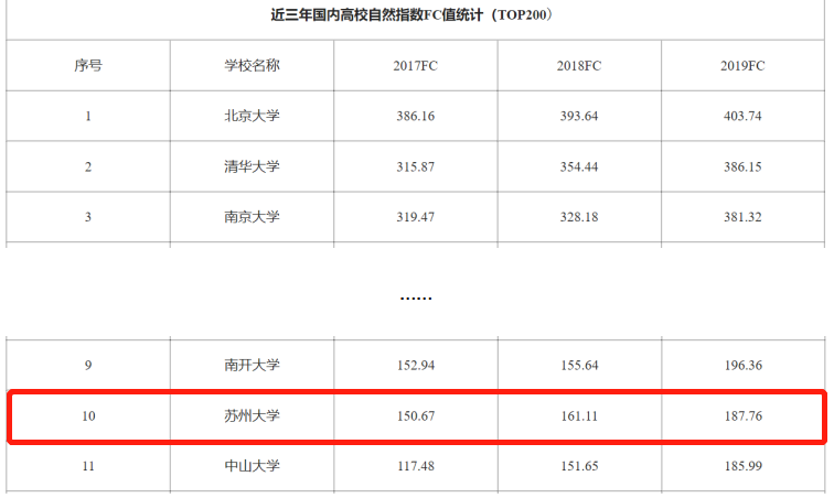 2019年6月20日,自然指数网站更新了2019年自然指数年度排行榜(统计时间节点为2018.1.1—2018.12.31),自然指数对于评价科研机构在国际高水平学术成果产出方面具有重要作用。苏州大学位列国内高校第10位。