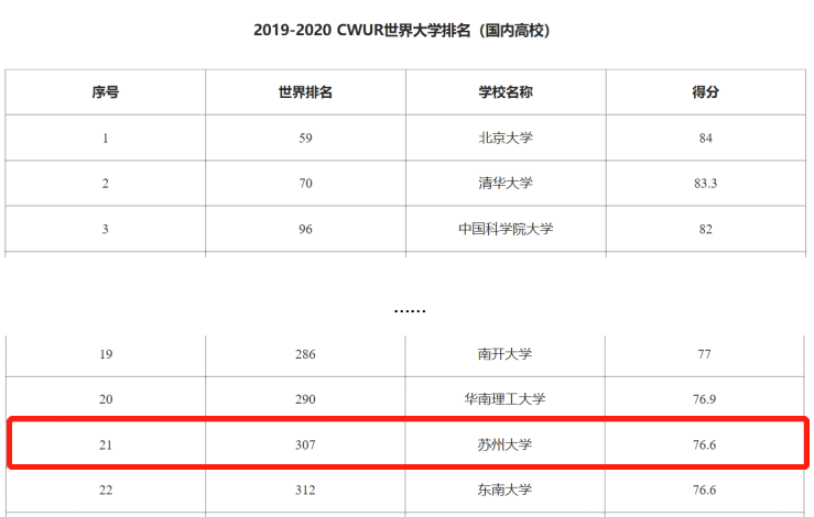 2019年8月,著名的高等教育研究机构世界大学排名中心(Center For World University Rankings,简称CWUR)发布了2019-2020的世界大学排名。苏州大学位列国内高校第21位。