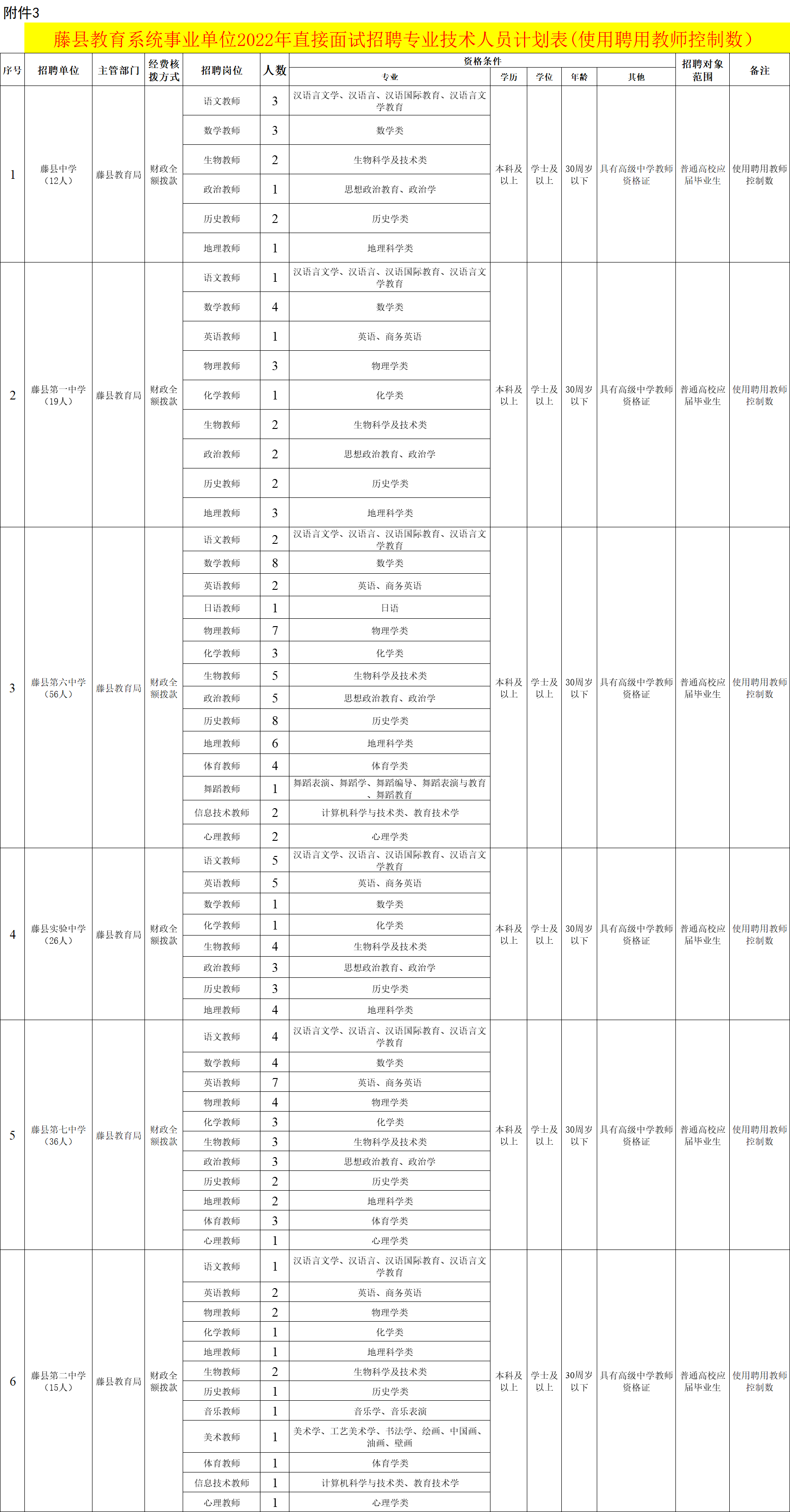 参加招聘会的单位:藤县中等专业学校、藤县中学、藤县第一中学、藤县实验中学、藤县第六中学、藤县第七中学。