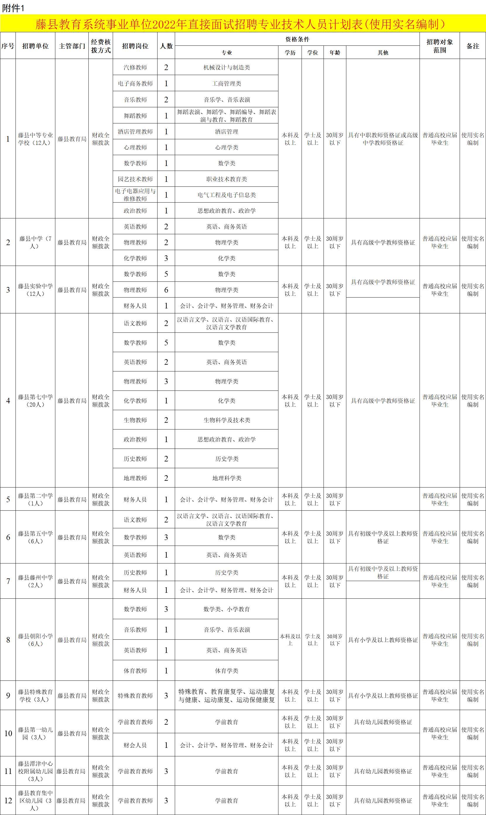 参加招聘会单位:藤县藤州中学、藤县第二中学、藤县第三中学、藤县第四中学、藤县第五中学、藤县第八中学、藤县藤城中心校、藤县潭津中心校、藤县朝阳小学、藤县第四小学、藤县第五小学、藤县第六小学、藤县第八小学、藤县第九小学、藤县藤州镇潭东中心校、藤县藤州镇津北中心校、藤县特殊教育学校、藤县第一幼儿园、藤县教育集中区幼儿园、藤县潭津中心校附属幼儿园。