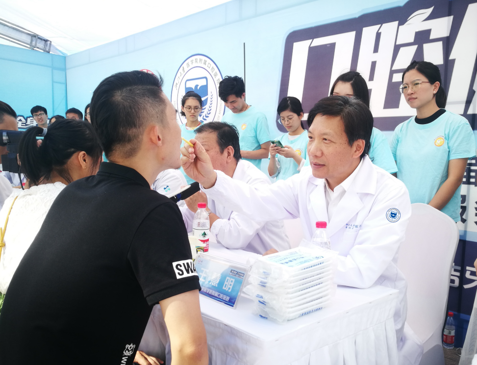 王慧明教授为市民检查口腔情况