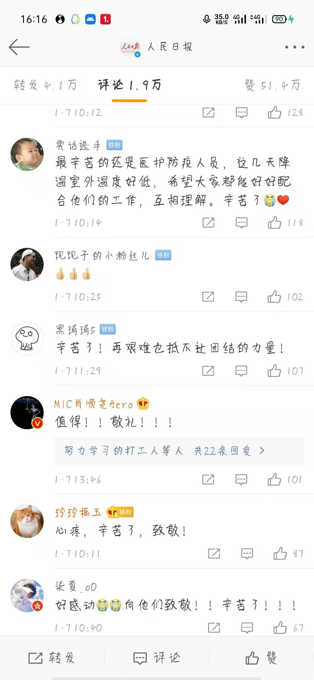 写给在疫情志愿者的一句话:你们的守护,我们铭记于心。虽说我们帮不上你们什么忙,但是我们能做的最大贡献就是不给你们添乱,做好个人防护措施,让各地区的疫情早日消散,迎接一片光明。