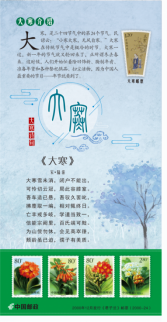通过方寸邮票讲述中国优秀传统文化之二十四节气,展示四季周而复始、分秒不可蹉跎的理念,与之相伴的争奇斗艳百花邮票传播着共创美好家园的理念,凝聚着中华民族悠久的文化底蕴。
