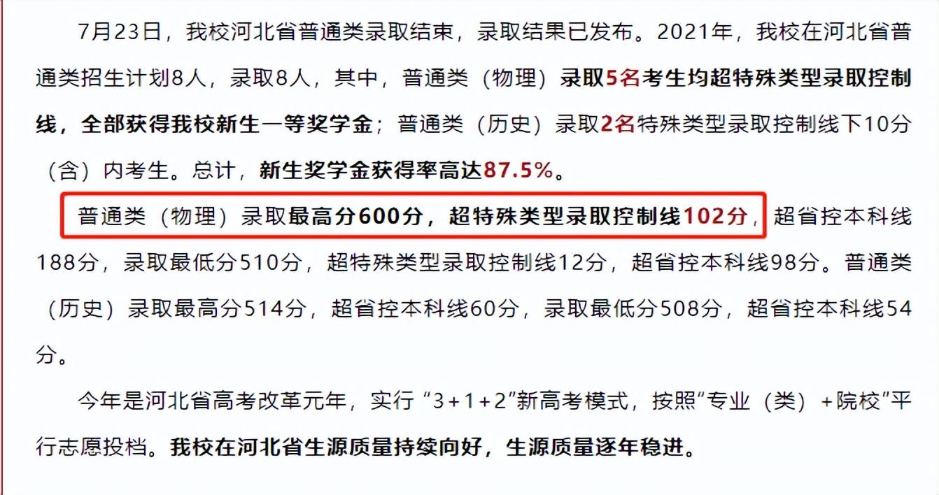 2021年,河北一名考生以600分的高分被一所民办本科院校录取。根据北京理工大学珠海学院公布的河北省投档情况,普通类(物理)录取最高分为:600分。超省控线本科线188分。