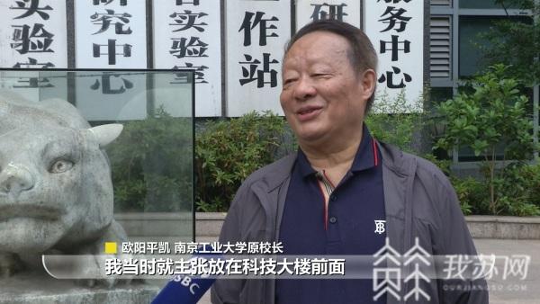 欧阳平凯说:"我觉得貔貅这个动物是想象的,又结合了一些现实主义的辟邪清新镇静的作用。我觉得对读书人的心境是有好处的,我们做研发也要有一种勇猛的精神,所以当年盖(丁家桥校区)科技大楼的时候,因为那边(图书馆)要拆,我当时就主张放在科技大楼前面。"