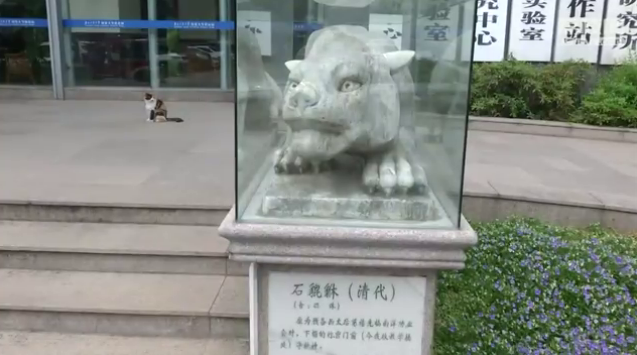 南京工业大学的前身南京化工学院的原址在丁家桥校区,虽然原来的老图书馆已经搬迁了,但是曾经守护在图书馆门前的两只貔貅,依然被完好地保存了下来。