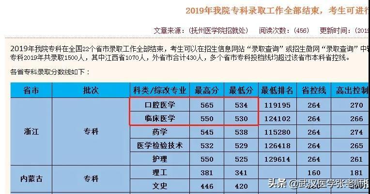 江西医学高等专科学校:2020年口腔医学专业录取计划已经完成!只针对单招学生招收,单招录取609人,其中口腔医学计划15个,由于是新开设的国控专业,文理科暂时未开设计划。2019年临床医学专业,文科分数线394分,理科分数线372分。