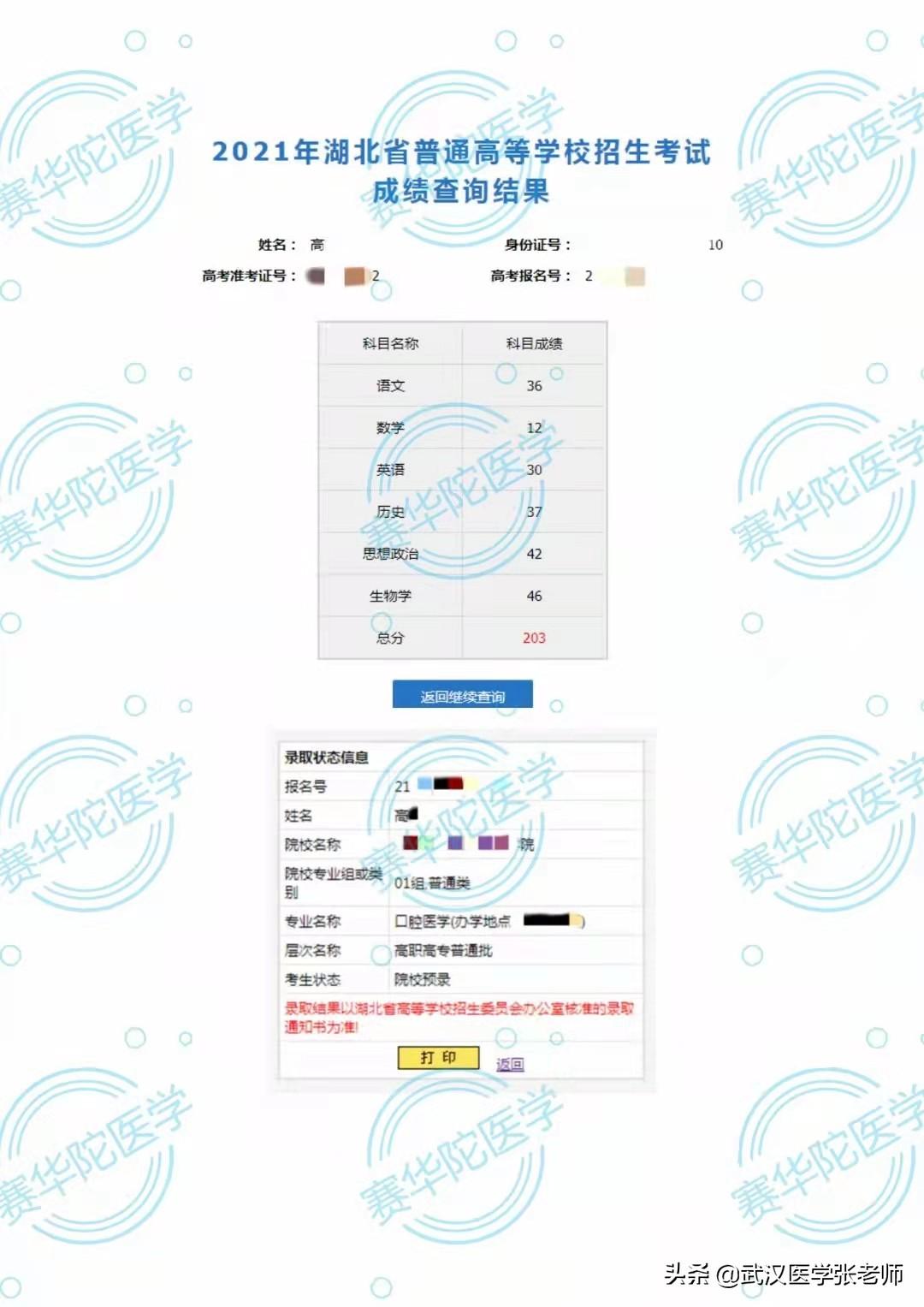 2020年我校高考最低分数203的学员录取至口腔医学专业