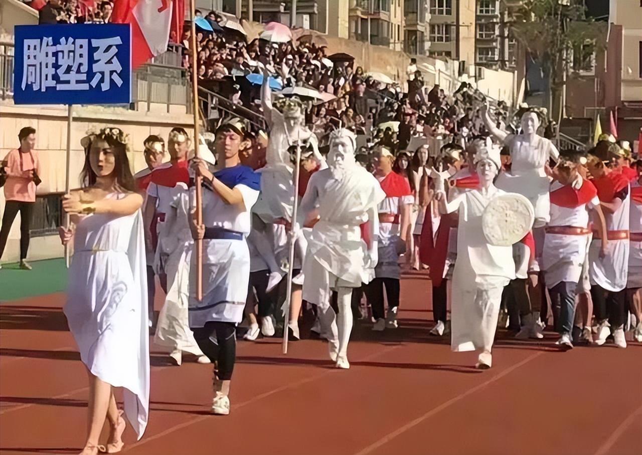 西安美术学院开模式很是精彩,雕塑系走出来的那一刻,瞬间火爆全场。希腊女神也来参加西美的运动会了?实名羡慕啊!美院也太有趣了吧~