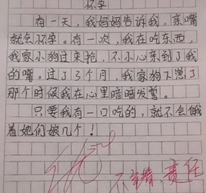 当老师在看到这位小学生的作文时,也是笑到岔气,不得不说,这位小学生写的作文虽然简短,但逻辑思维还是不错的。