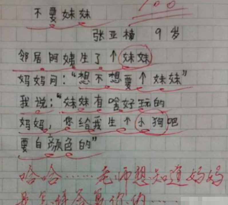 这位家长就是如此,不过,让家长没有想到的是,这件事竟然被小学生写成作文,她是这样写得“领居家阿姨生了个妹妹,妈妈问:想不想要个妹妹”?