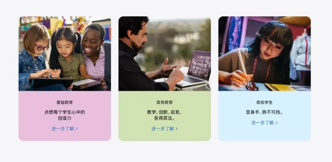苹果表示,致力于帮助各个机构体验 Apple 科技带来的变革力量,帮你找到合适的产品和服务,助你达成目标,实现理想。并且将探索 Apple 产品如何帮助你的机构建设多元化学习环境,为学生取得全方位成就提供支持。