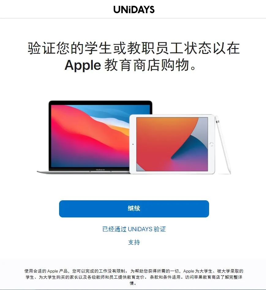 需要注意的是,除了UNiDAYS认证之外,目前依然可以通过自己的学生或者教师证件进行认证。步骤大致是:在苹果官网或者是通过致电苹果客服,让他们直接协助完成购买和资格认证流程,你只需要提供 Apple ID、确认订单及付款、资格认证(学信网验证码或者学生证验证)。
