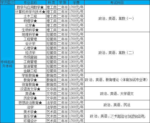 2020年信阳师范学院成人高等教育招生专业、考试科目及学费标准