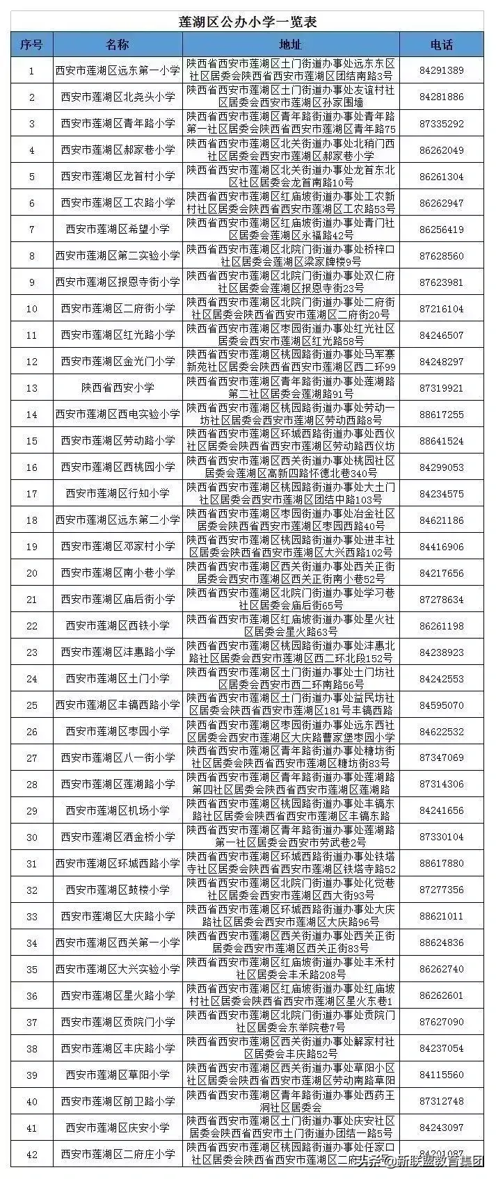 今天小新给大家整理了一份西安市城六区现有公办院校名单(分区域),从幼儿园、小学到初中、高中所有的公办院校地址、电话通通都在这里了!一起来看一下这些名单吧!(区排名不分先后)