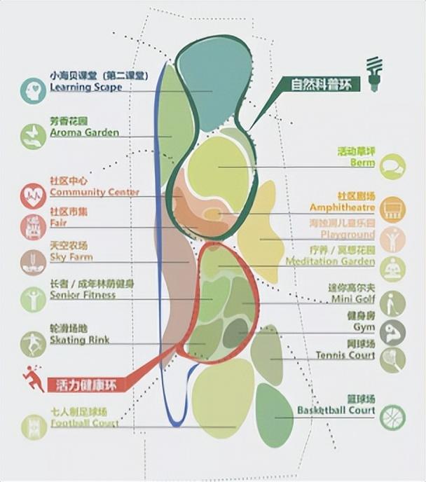 项目规划约30万方双公园,其中约15万方空中花园, “两环一心八景”多元活力配套,规划有社区农场、海蚀洞乐园、小海贝课堂、网球场、迷你高尔夫球场……