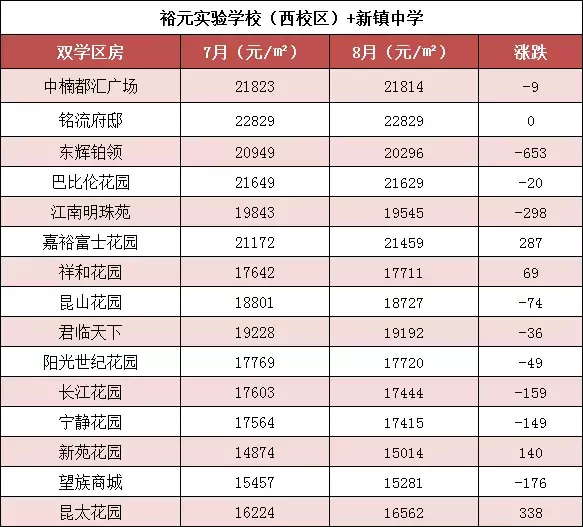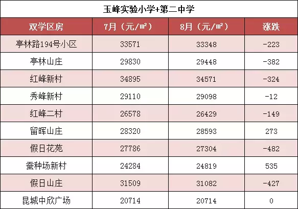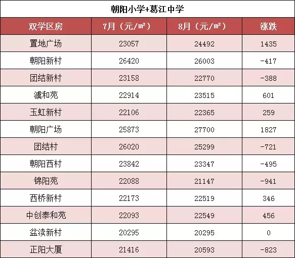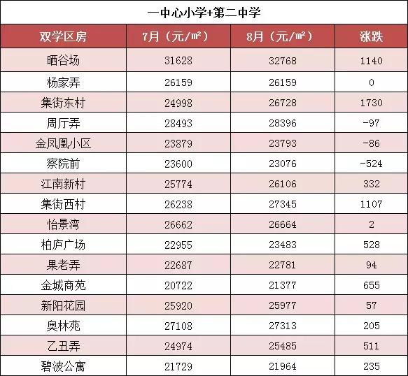据最新统计,8月双学区房的价格走势总体平稳,较上月价格没有太大变动,具体均价见下图。