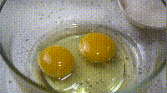 1、鸡蛋打入干净无水、无油的盆中备用。