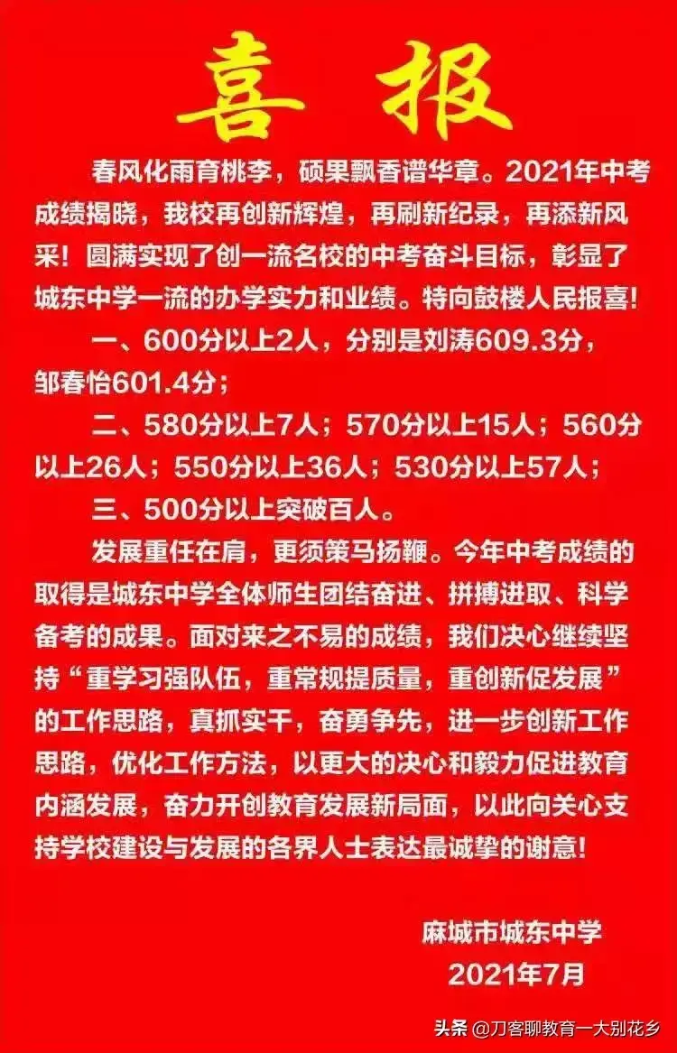 三年坚实育人路,一朝喜闻捷报传。麻城市松鹤中学2021年中考再创佳绩!