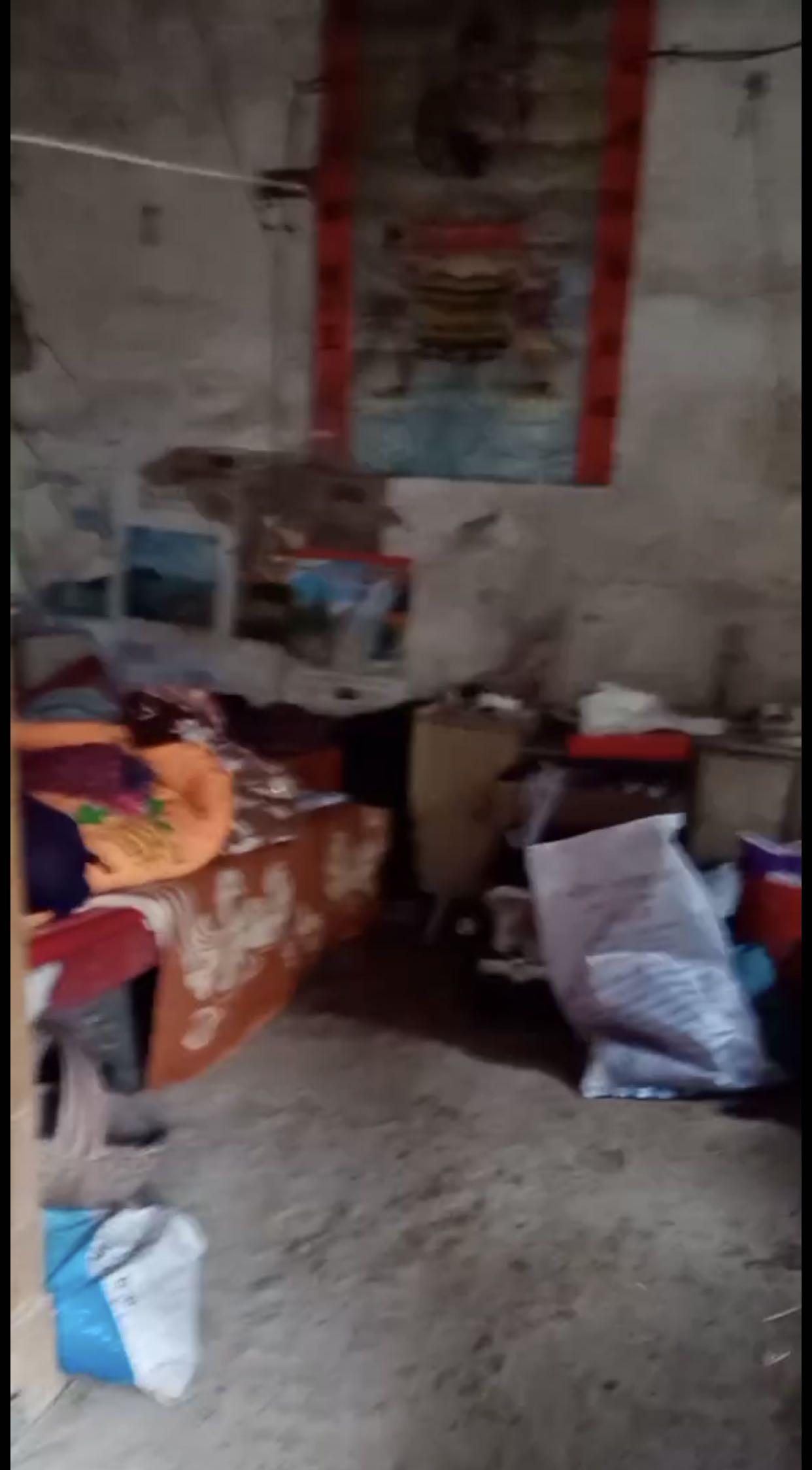 王友志家里,胡乱摆放着简陋的家具和各种杂物,多处墙体已经开裂