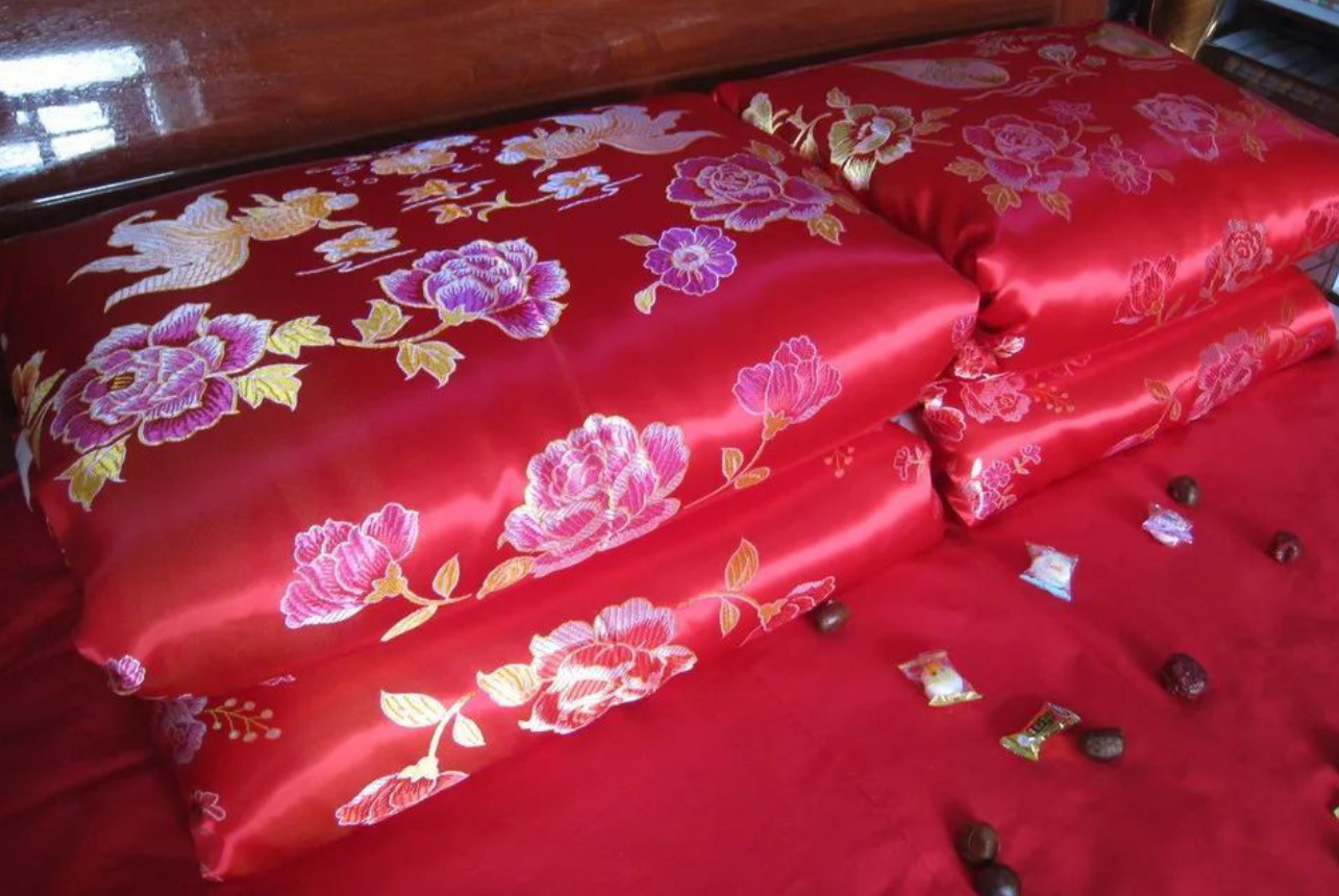 除了喜被的选择之外,铺床的讲究也不容忽视。比如在大婚前一天,女方会派一位儿女双全,家庭幸福美满的亲人去男方家铺床,同样,男方那边也会派一个幸福之人去女方家催妆。在喜被上洒花生和红枣也是常见的习俗之一,有早生贵子的寓意。