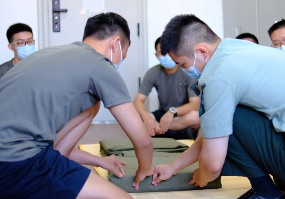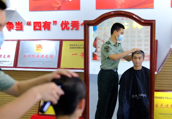 作为军校中的学员,学生们的仪容仪表要求很严格,男生需要剪寸头,“帮新生理一次发”就是班长要做的第二件事。还有“帮新生叠一次被子”,说是帮助,其实是在给新生们做示范。