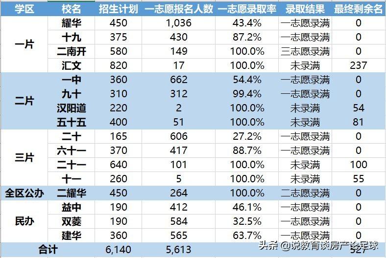 随着民办学校公立老师的回流,各片区的公立大头校的师资得到了加强,这种回流自带光环,将家长们对民办校的信任加持到公立大头校身上,热情不可阻挡。这一点从各片区公立大头校的一志愿录取概率上就可以看出来,二十中学甚至创造了和平区一志愿录取的最低比率。