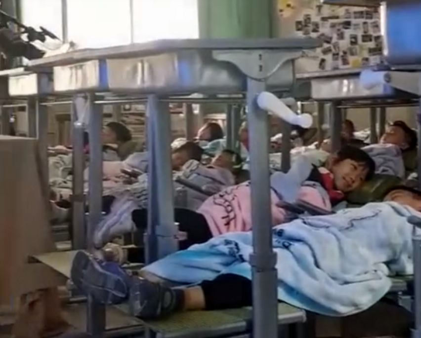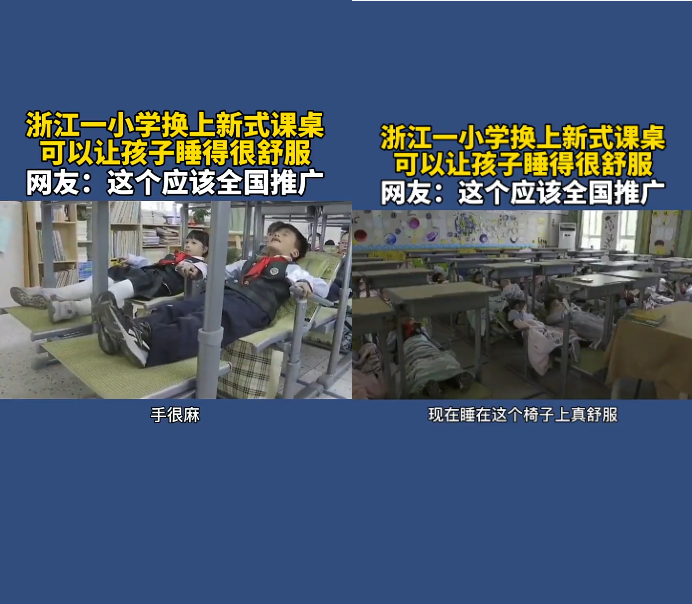 为了让学生午休睡得更舒服一些,拥有更高的睡眠质量,浙江一小学引进了一批新型课桌,这个课桌非常高科技,是可以升降的,到了午休期间把课桌上的挡板降下来就可以躺着睡觉。