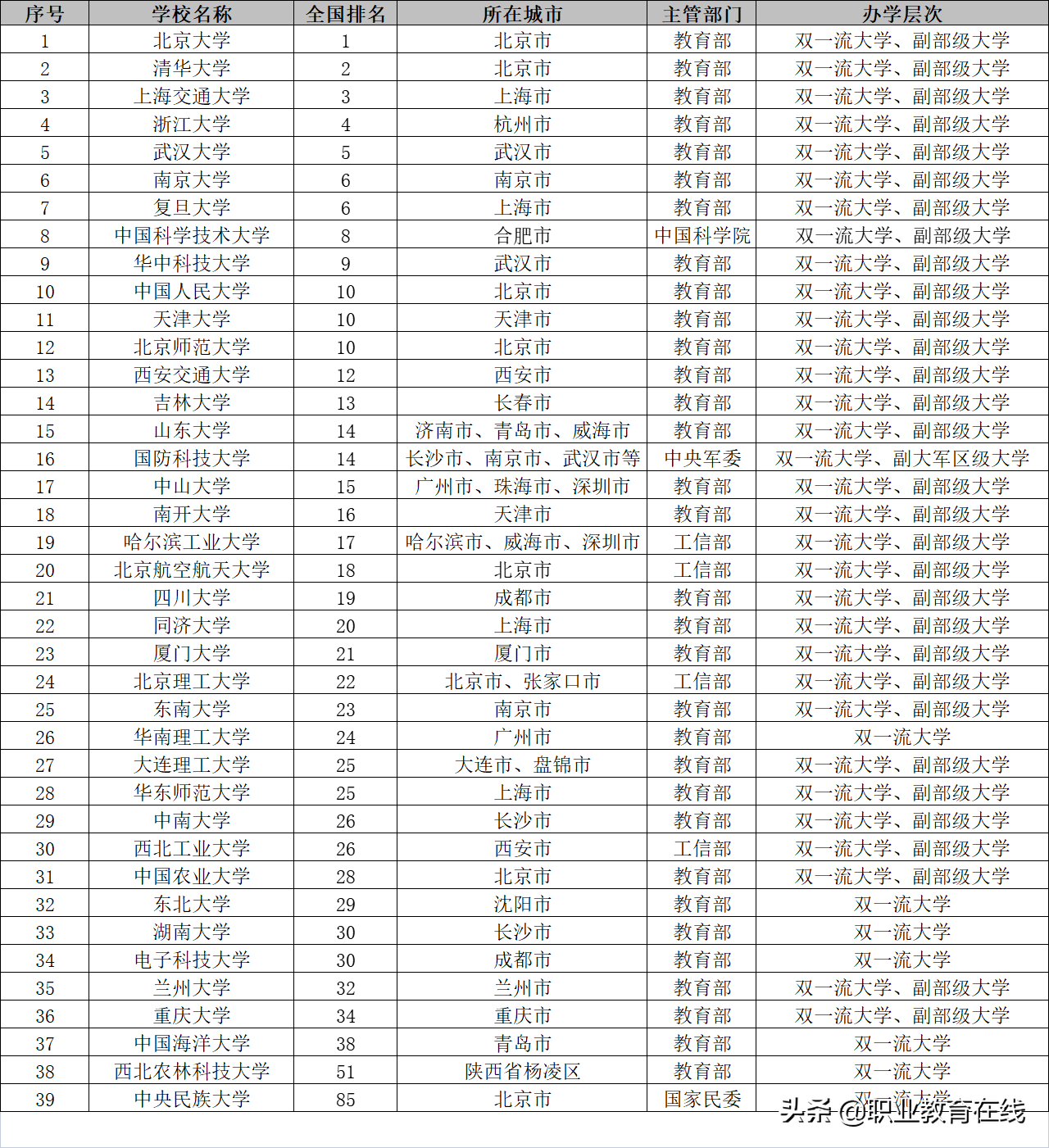 虽然985大学这种提法已经不再被官方使用,但这39所985大学是真正的中国最强大学。我们来看下985大学的实力: