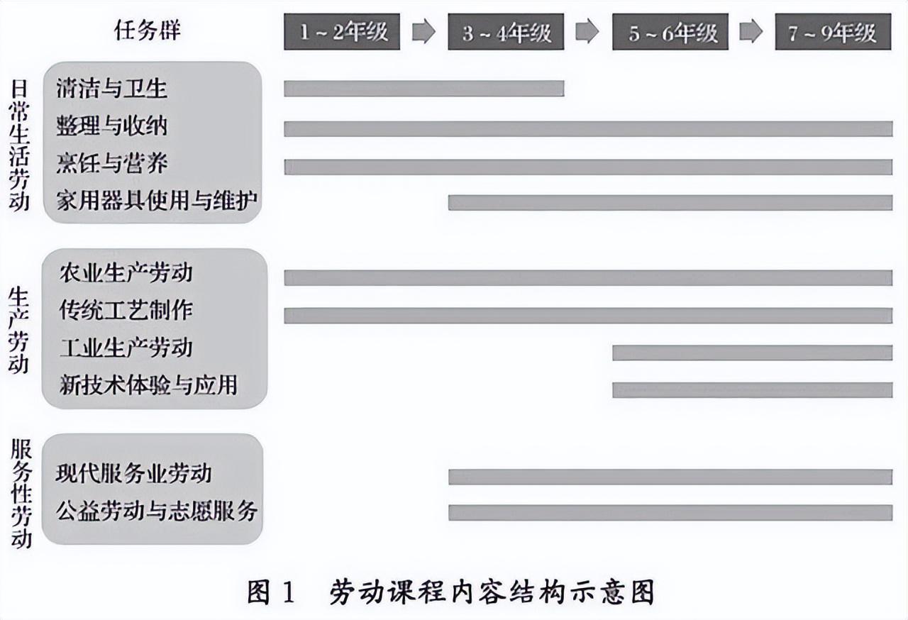 各学段任务和目标层层递进,旨在引导学生树立正确的劳动价值观,崇尚劳动、尊重劳动,养成良好的劳动习惯。2020年教育部印发的《大中小学劳动教育指导纲要(试行)》已规定,中小学劳动教育课平均每周不少于1课时。