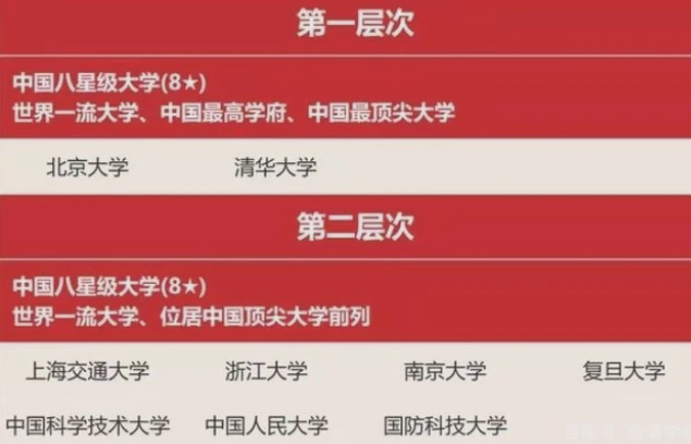 随着中考临近,各大机构也重新对全国的高校综合水平进行了评估,一共分为七个等级。当然,第一层次还是我们那可望而不可及的梦想院校——清华北大,中国门神一般的两所学术殿堂。