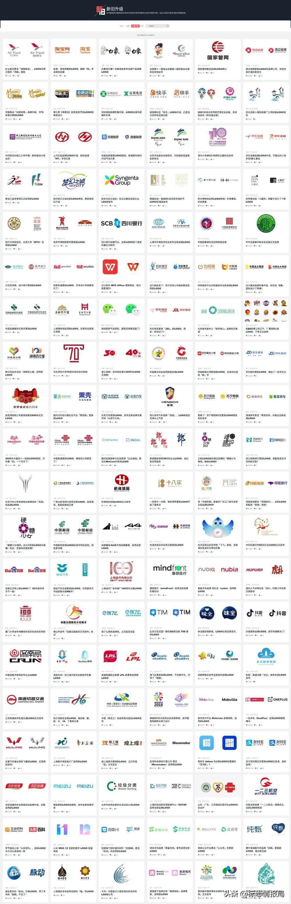 为了让大家能够更直观的检索新旧LOGO升级的文章,我们在近期推出了一个新的板块「新旧升级」。通过该页面您可以非常直接的看到每次报道中涉及的新旧LOGO对比图片,点击相应的卡片后进入详细的文章页面。