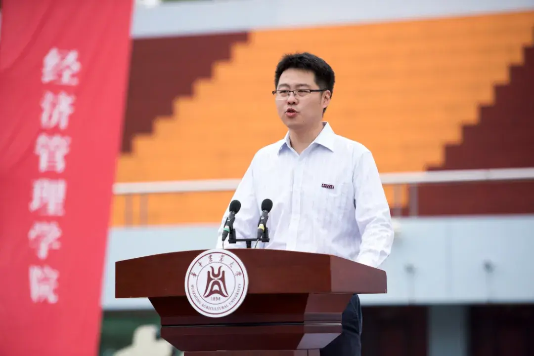 国家自然科学基金优秀青年项目获得者、作物学教授王茂军老师代表教师发言。他说,对各位新同学来说,今天是一个值得用一生去铭记的日子。大家的未来将永远和百廿名校——“华中农业大学”紧紧联系在一起。他回顾了在校求学的13年、4000多个日日夜夜,他表示,“是华农将我培养成为了一名激扬梦想、有所专攻的青年教授。”作为学长,他向2020级学弟学妹们分享了三点建议:选择只是开端,奋斗才能让选择有价值;学习不能满足,要时刻保持对新鲜事物的饥渴感;志向当存高远,激扬梦想才能追求卓越。