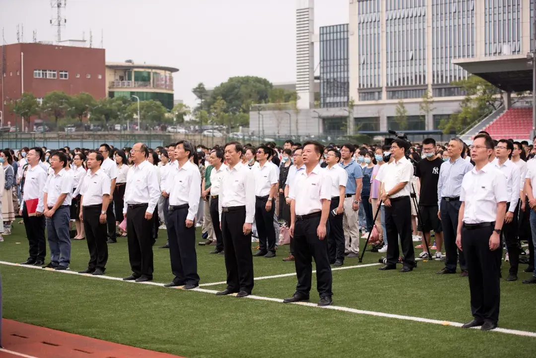 在庄严的国歌声中,研究生新生开学典礼拉开帷幕。