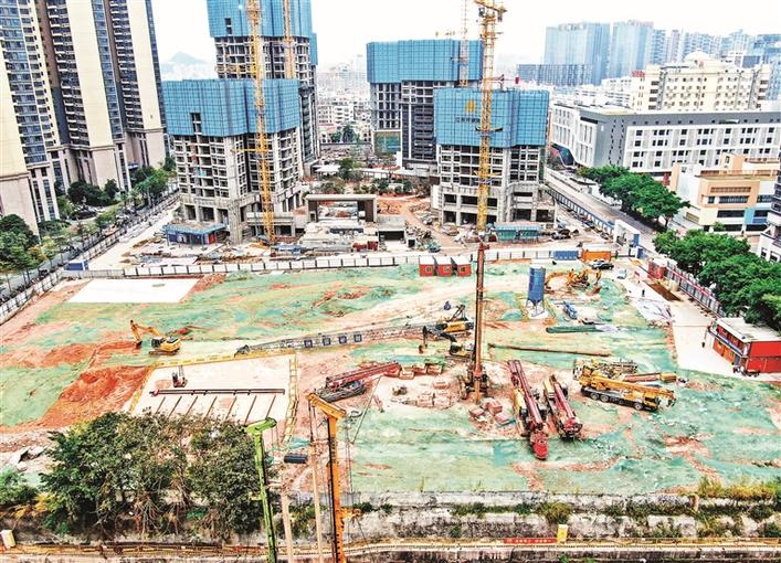 雨过天晴,位于龙华街道规划一路与鸿昌路交会处西南侧的创新实验学校初中部项目,恢复了繁忙的建设。