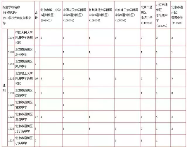 接下来看看优质高中招生情况,表格是选择的校区在通州以及面向通州招生有特殊说明的学校。