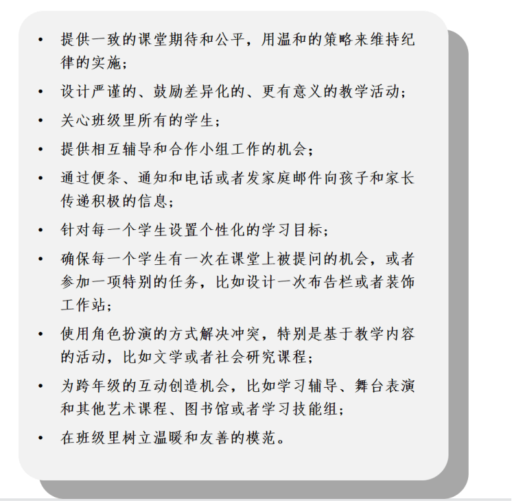 在学校和班级中,无论是教育幼儿、青少年或是年轻的成年人,教育者都要意识到,他们是创建和保持积极的、创造性氛围的重要角色。